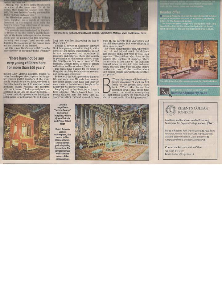 Katrina Burrows interview with Miranda Rock after she had just moved to Burghley House.